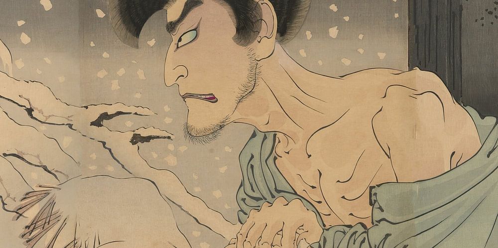 Tsukioka Yoshitoshi (1839 - 1892) was a renowned 19th century Japanese ukiyo-e artist active in the Edo and Meiji eras. Yoshitoshi was known for his impressive woodblock prints, which often depicted themes from history, literature, theatre and mythology. He is considered one of the last great masters of the ukiyo-e genre and is highly regarded for his exceptional artistic contribution to Japanese printmaking. His works are characterised by a mastery of techniques, intense emotional expressiveness and a preference for sombre and dramatic subjects. Yoshitoshi's influence on Japanese art was significant, and his works are still appreciated worldwide today.