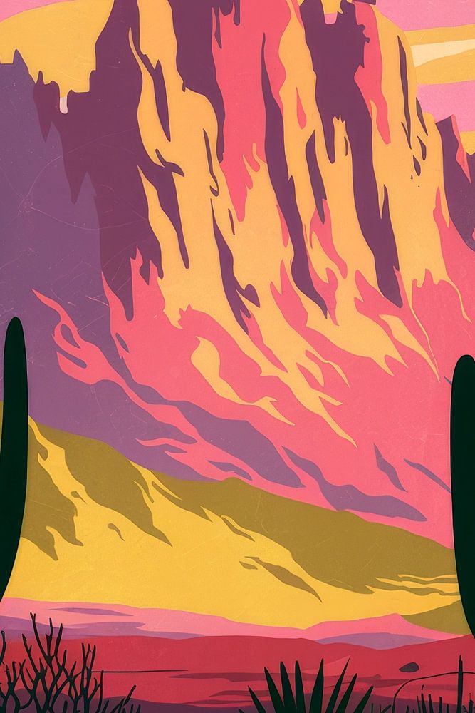 A fascinating play of colours in warm pink and orange tones that captures the majestic mountains of Tucson. The striking cactuses in the foreground add a special touch to the scenery, while the soft sky creates an atmosphere of freedom and adventure. Ideal for a stylish wall design in the living room or bedroom, creating a relaxed, inviting mood.
