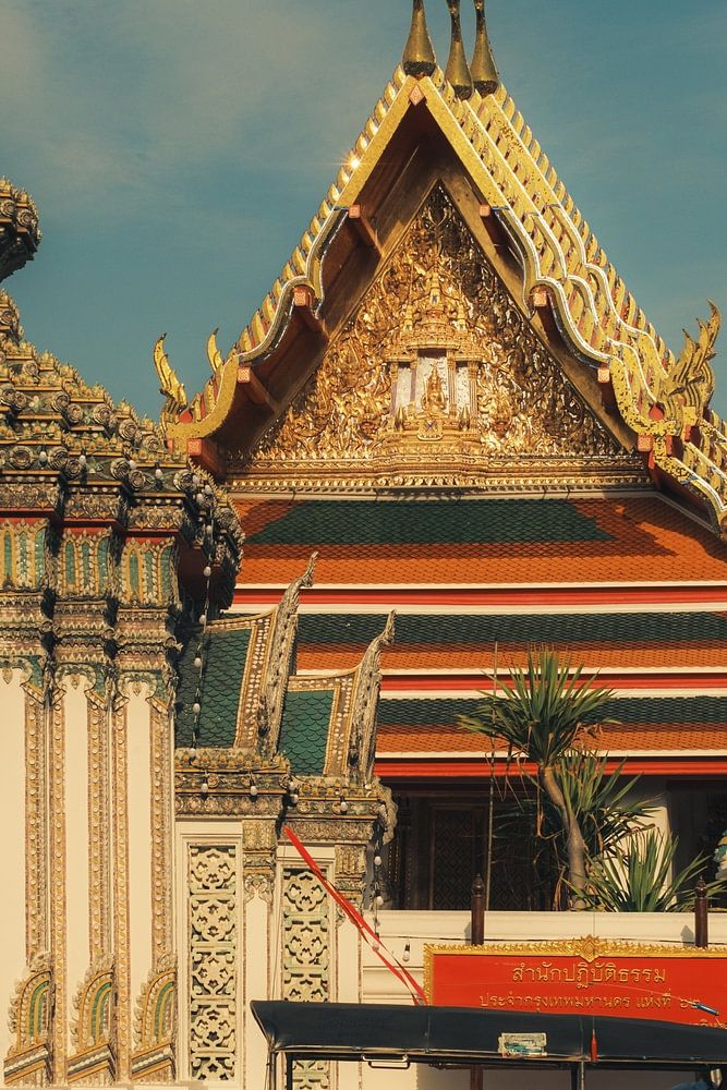 The picture combines the colourful, bustling street life of Bangkok with the magnificent architecture of a Thai temple. A classic tuk tuk, the iconic three-wheeled taxi, stands in front of the gold-decorated walls and detailed roof of a famous temple. The intense colours, clean lines and bright daylight make the scene a perfect example of everyday life and sightseeing in Thailand's capital. Temples in Bangkok are not only places of worship, but also impressive testimonies to artistic mastery and cultural identity. This motif appeals to lovers of Asian cities, fans of travel photography and anyone who appreciates the urban flair of Southeast Asia. As a wall mural, it brings energy, colour and an authentic piece of Thailand directly into your home, office or café. It is a reminder of travelling, adventure and the magic of foreign cultures right in the heart of the city.