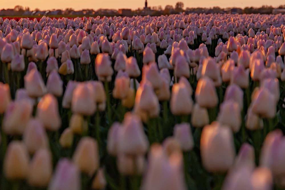 In spring the tulip fields are in bloom here, with this one the so goes down and the golden glow colors the field beautifully warm