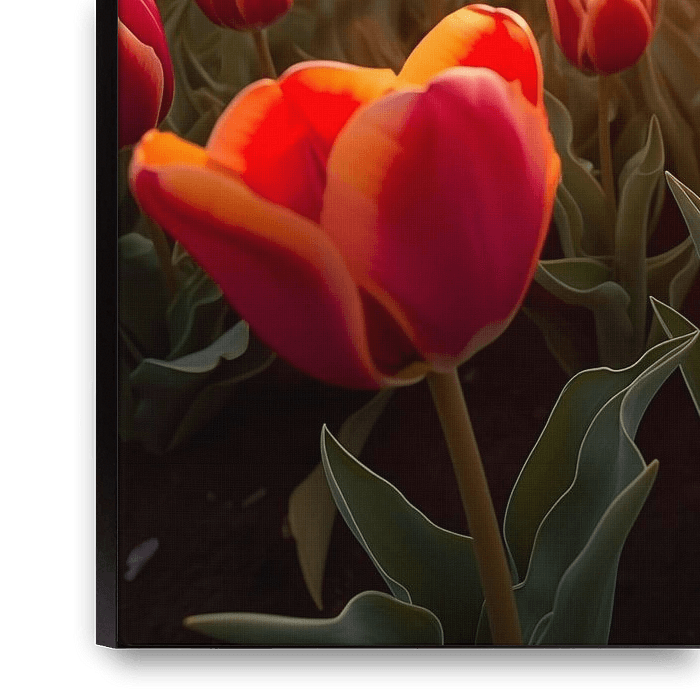 Tulip field netherlands painting with a beautiful and unique style. With beautiful colour tones and a unique design, this makes a stylish photo print that looks great in any room. 100% unique and original!