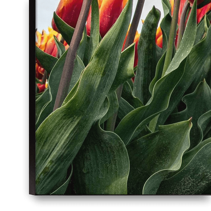 I photographed this row of tulips from a frog's-eye view to get a nice colour contrast with the sky.