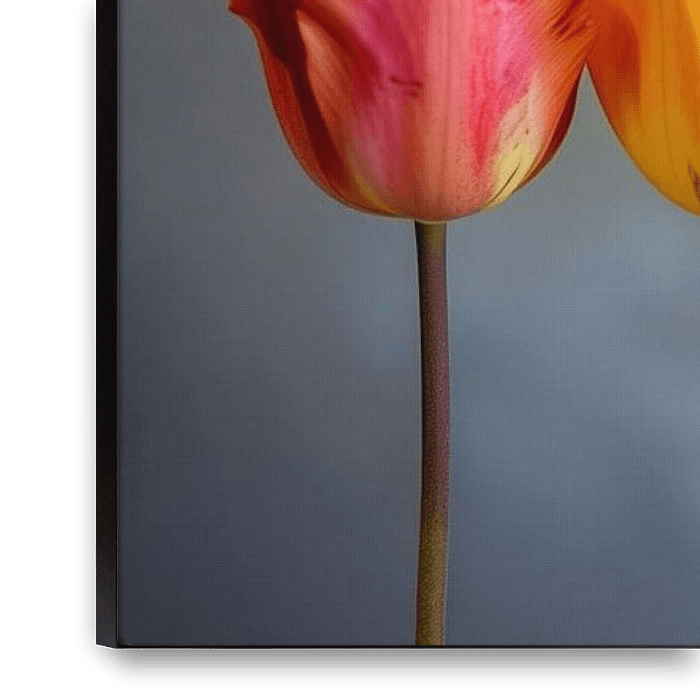 The photorealistic panoramic painting captures the splendour of eight majestic tulips in all their glory. These flowers, placed in a perfect line, stretch across the canvas and immediately capture the viewer's attention. With stunning accuracy, the nuances of their colours are captured: vibrant purple, fiery red, tender pink, radiant…