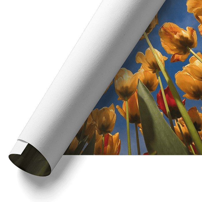 Yellow, orange and red tulips photographed from below. (Kikvors perspective)
