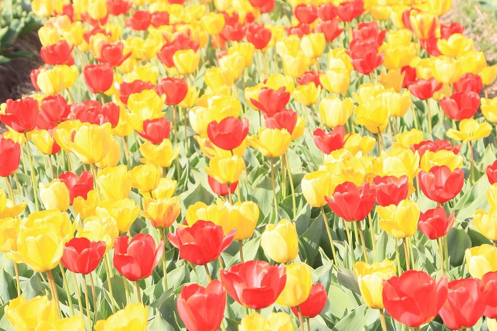 Tulips in the Spring in the Netherlands in beautiful strong colours Red and Yellow