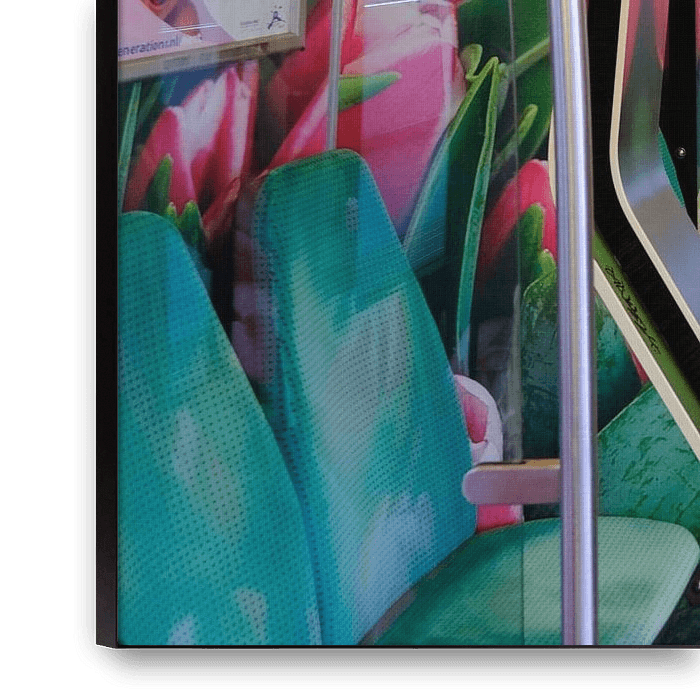A metro full of tulips! A colourful, cheerful picture taken in one of Rotterdam's metro's.