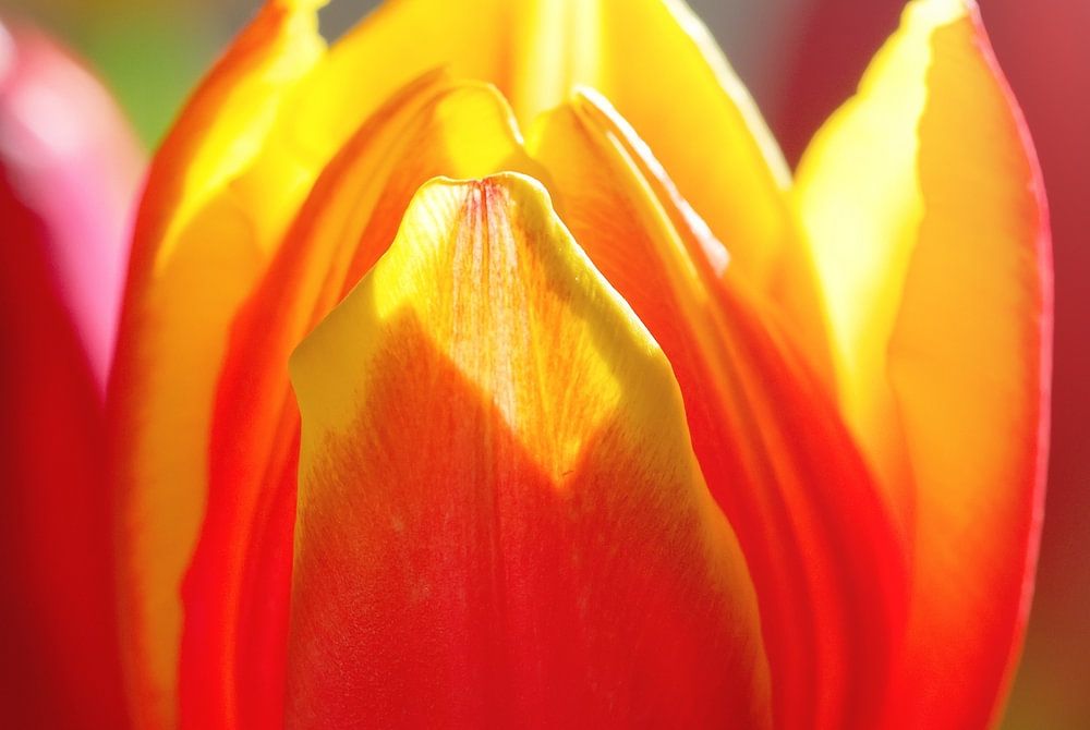 Bright red and yellow tulips in the morning sun