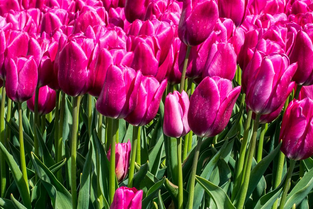 Tulips purple-bulb fields in the province of Flevopolder Netherlands