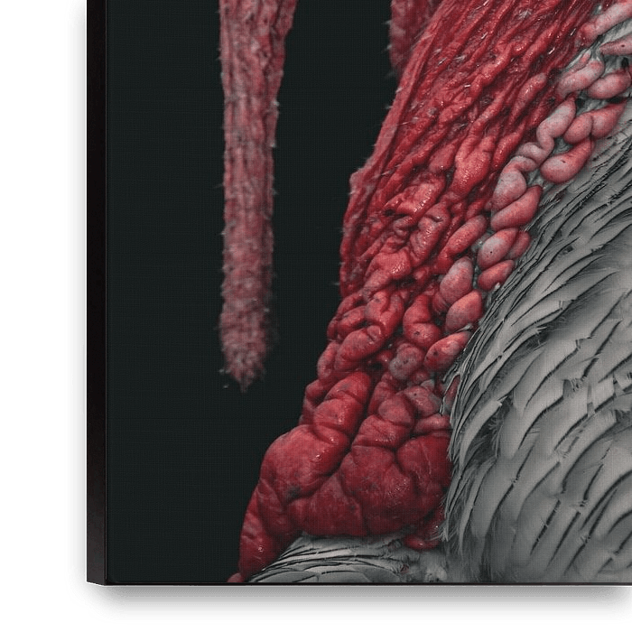 Is this turkey incredibly ugly or terribly beautiful? You get to decide. Maybe you can't choose right away. Take a longer look at it. By hanging it on your wall, for example. You'll keep looking at it. Fascinating.