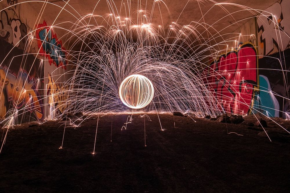 Turning steel wool in an abandoned tunnel by Rianne Kugel