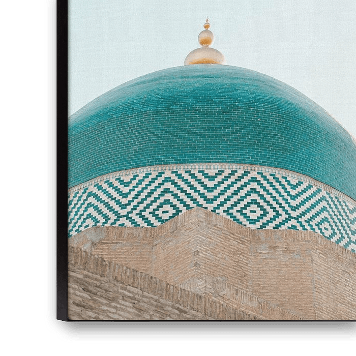 Uzbekistan is full of photogenic buildings, mostly with mosaic patterns in turquoise and blue. This is the Pahlavan Mahmud Mausoleum, taken from the outside. This photo print is ideal for lovers of minimalist travel photography!