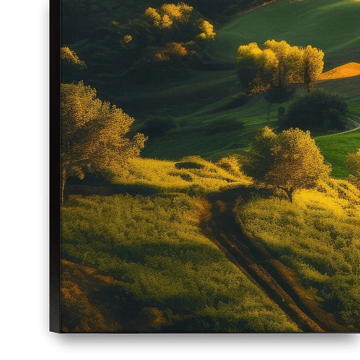 Buy this landscape artwork Tuscan landscape with rolling hills sunset by René van den Berg on canvas, ArtFrame, poster and wallpaper, printed on demand in high quality.