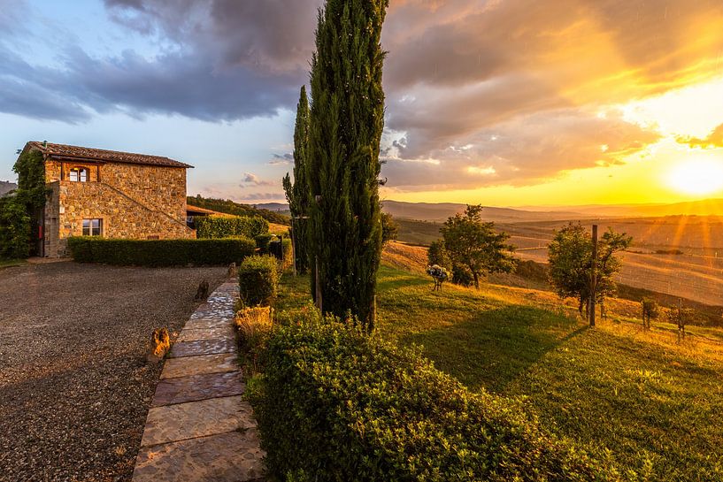 Buy this landscape artwork Tuscany sunset by Gunter Nuyts on canvas, ArtFrame, poster and wallpaper, printed on demand in high quality.