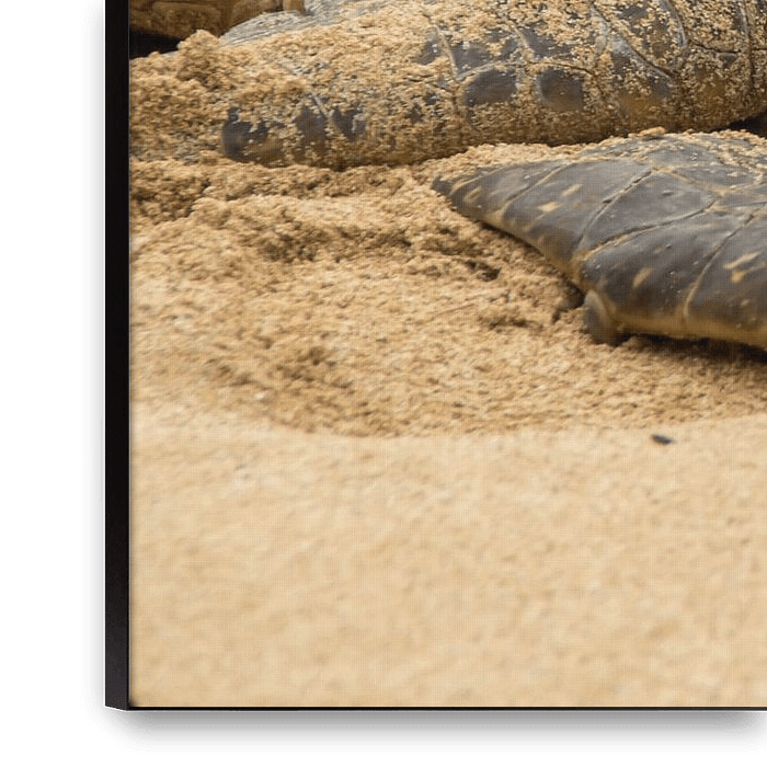 Two hawaiian grean sea turtles cuddling on the north shore of Oahu