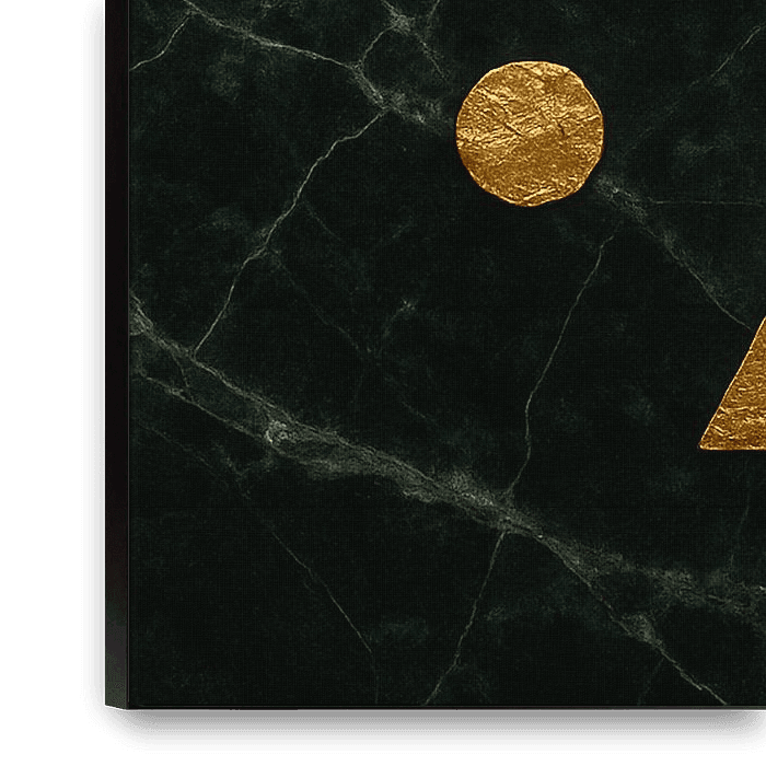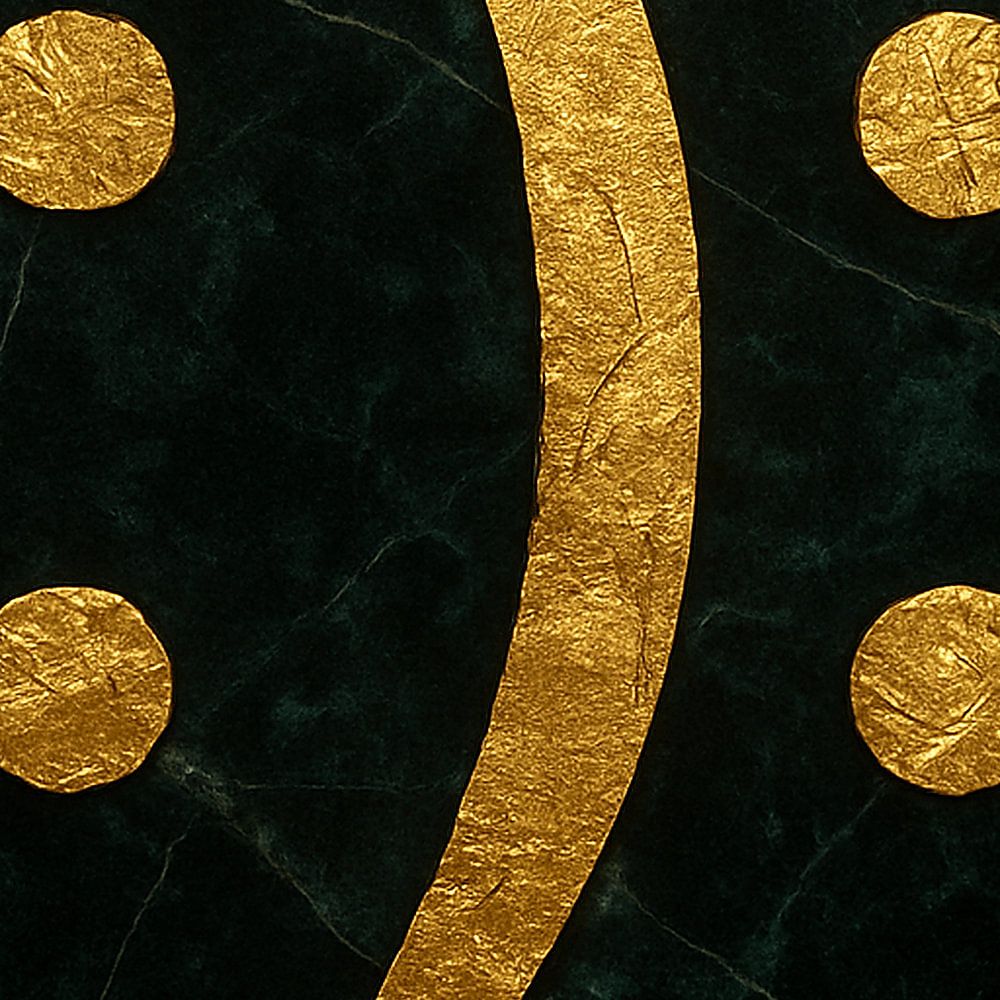 Gold leaf, carefully applied to dark marble, forms the :): symbol with the grandeur of an age-old ornament. The golden surface glistens and cracks into fine craquelures — the ravages of time that spare not even the most precious of things. The marble beneath is cool and dark, veined with emerald green and white like frozen rivers. Two…