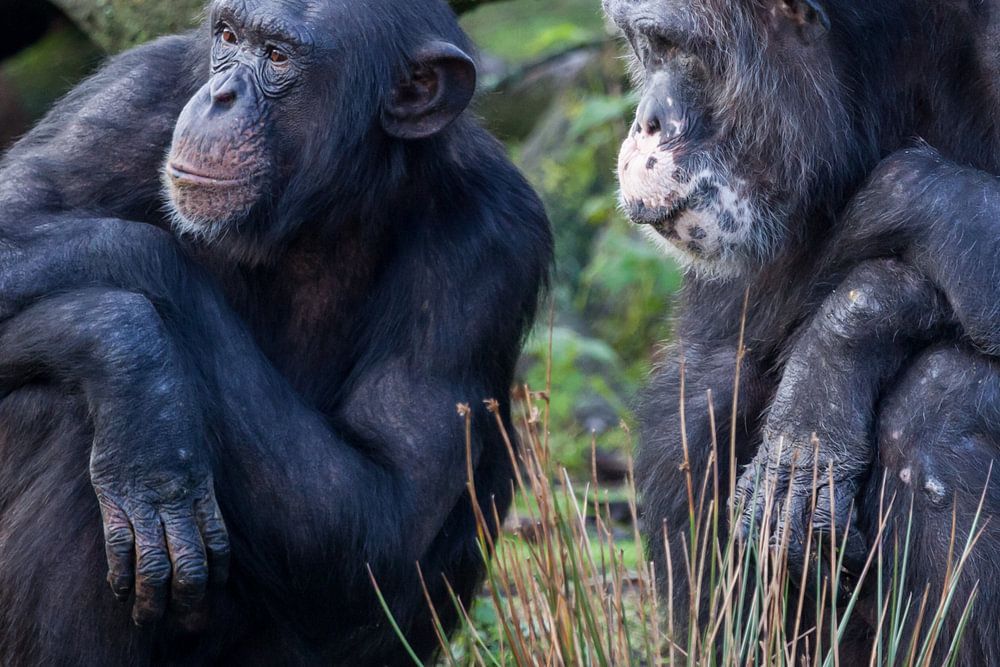 Buy the photo Two chimpanzees looking at something else by Joost Adriaanse on canvas, ArtFrame, poster and wallpaper, printed on demand in high quality.
