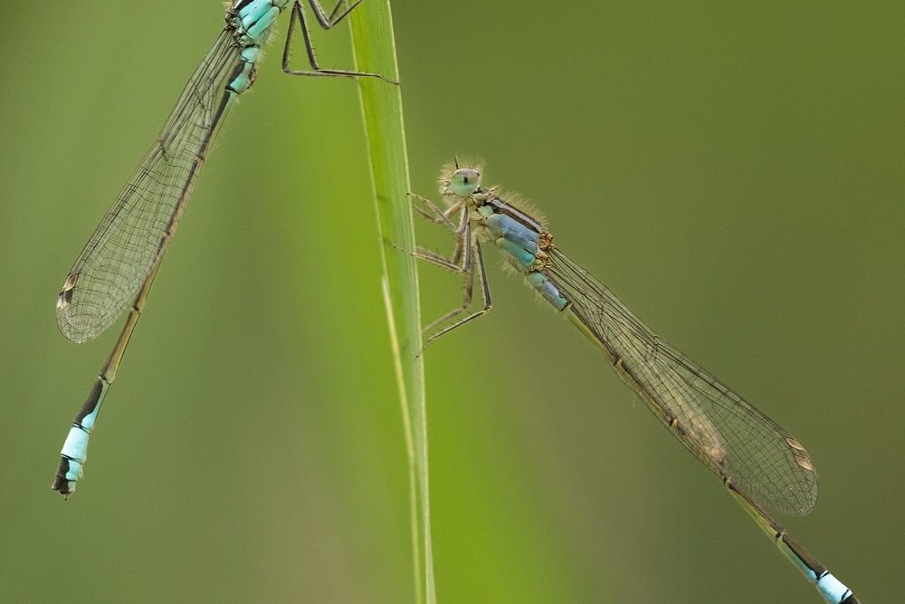 Alongside ditches, ponds and water features, but also in a somewhat smaller garden pond, you can enjoy the damselflies. Most of these delicate creatures are mainly blue coloured.