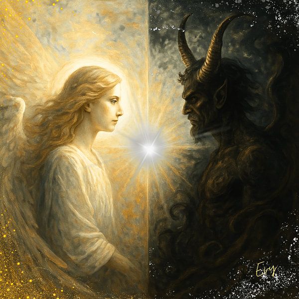 Buy this modern artwork Two forces, One world by Eveline Cleyman on canvas, ArtFrame, poster and wallpaper, printed on demand in high quality.