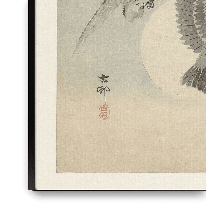 Buy Two geese in flight, Ohara Koson as a reproduction on canvas, ArtFrame, poster and wallpaper, printed on demand in high quality.
