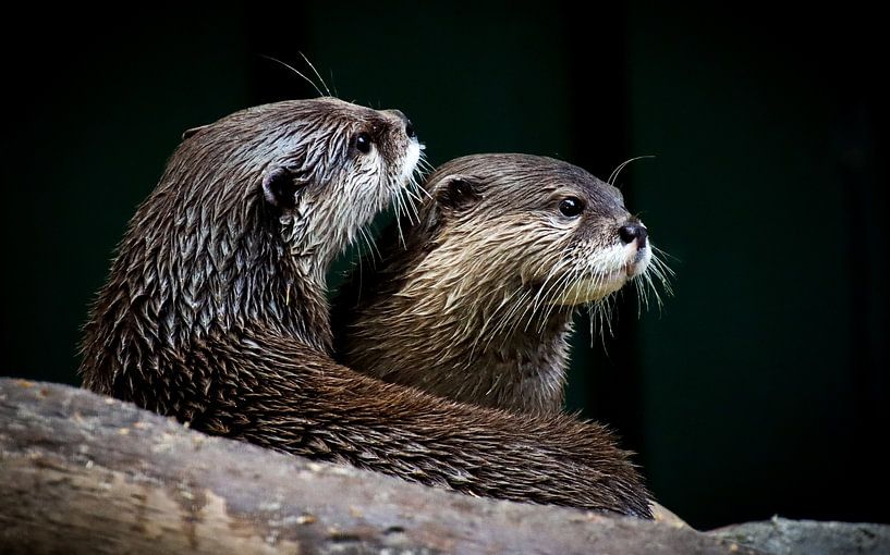 Two large otters rest together on a rock. by Grietje Fieten