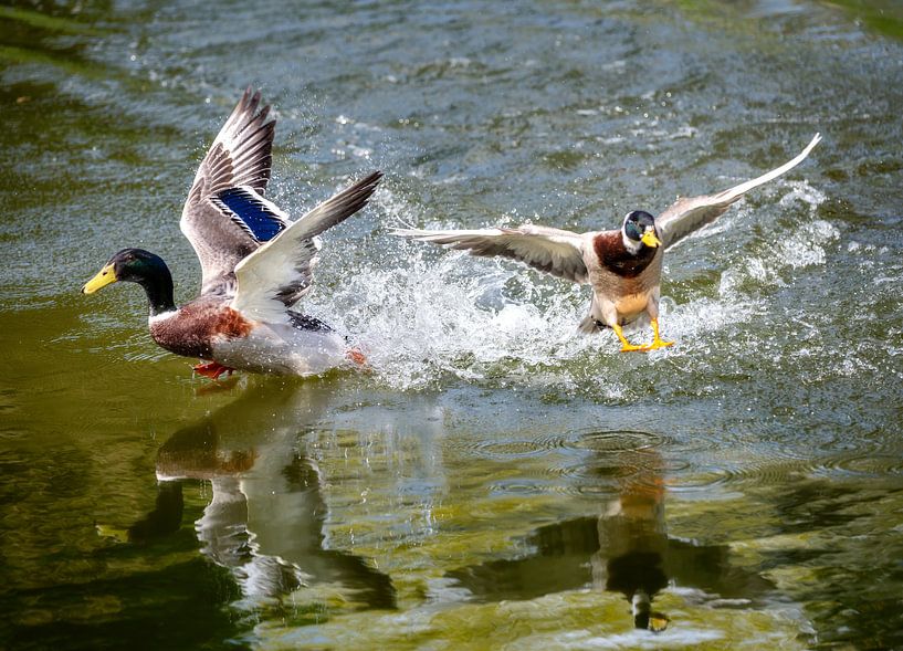Buy this bird art Two mallards approaching by ManfredFotos on canvas, ArtFrame, poster and wallpaper, printed on demand in high quality.