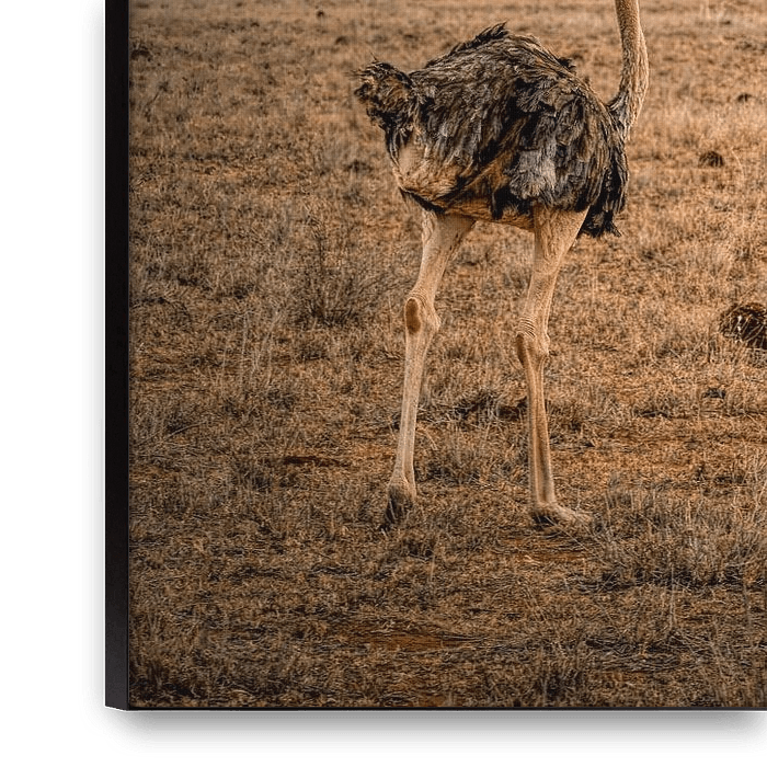 A photo of two ostriches running away in a wildlife park in Kenya The photo was taken during a game drive in Kenya in Tsavo East Masai ostrich, 2 females Beautiful brown/red hues