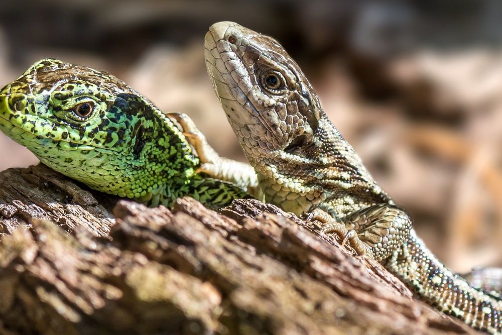 A male and a female sand lizard made with a macro lens for more detail in the photo and with a nice soft background