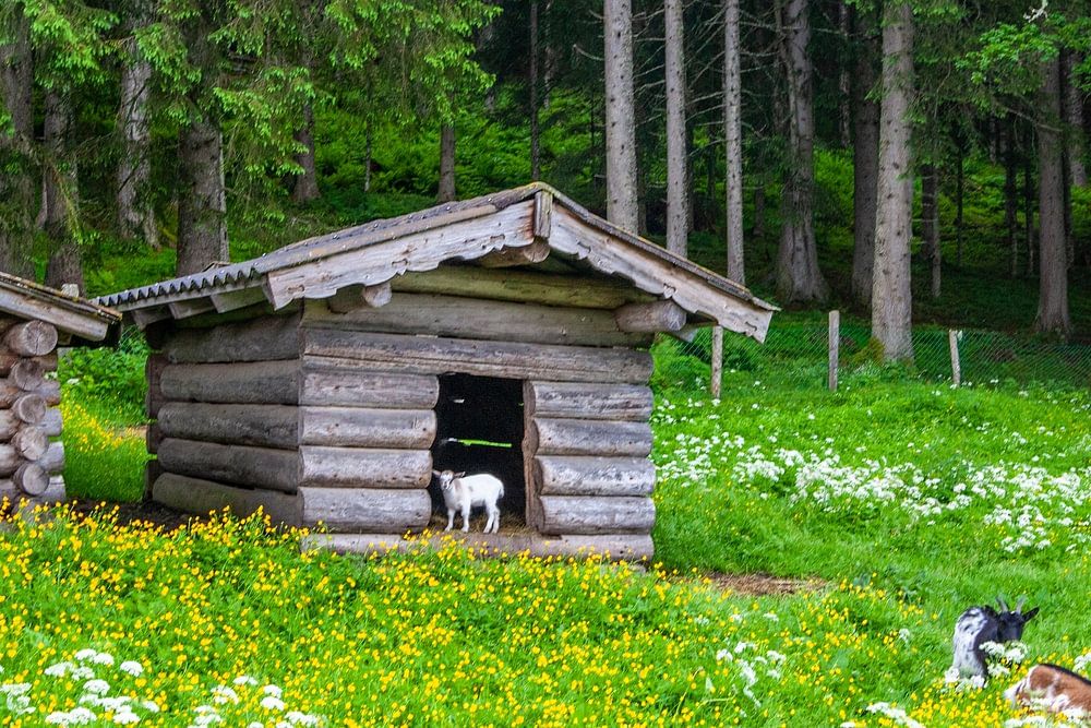 Two small huts on the edge of the forest at the Sattelbauer in Flachau