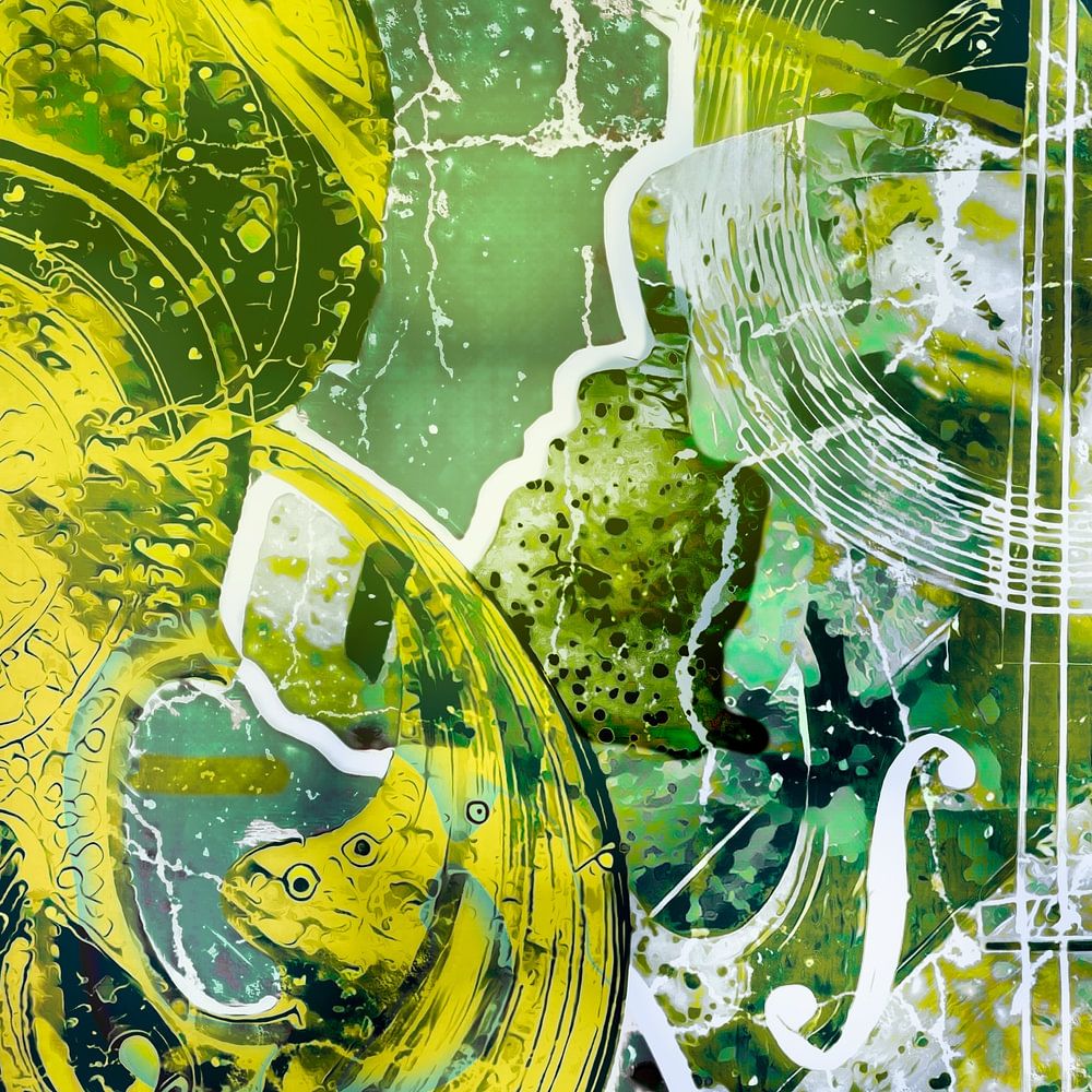 Buy this abstract artwork Two violins and a lady in profile by Helga Blanke on canvas, ArtFrame, poster and wallpaper, printed on demand in high quality.