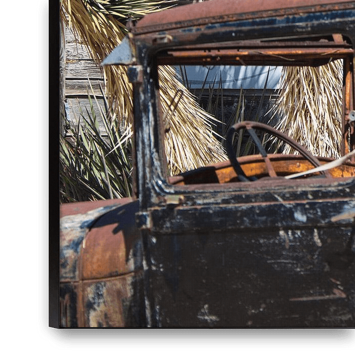 Oude iconische verroeste auto in Seligman langs de befaamde Route 66 in Amerika