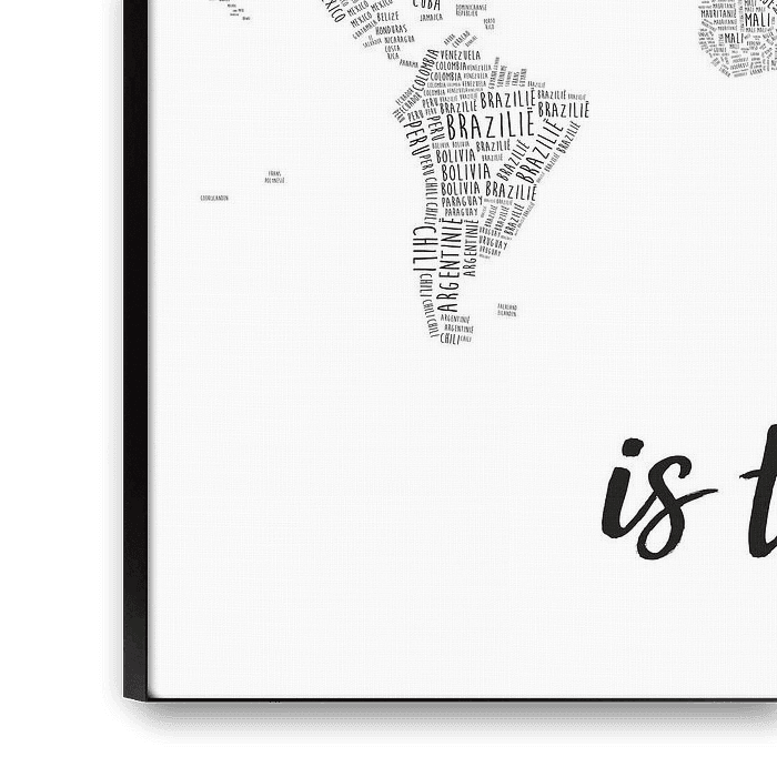 From a distance this world map already looks very artistic. But once up close you will see that all country names are playfully positioned in the world map. The country names are of course in the right place.