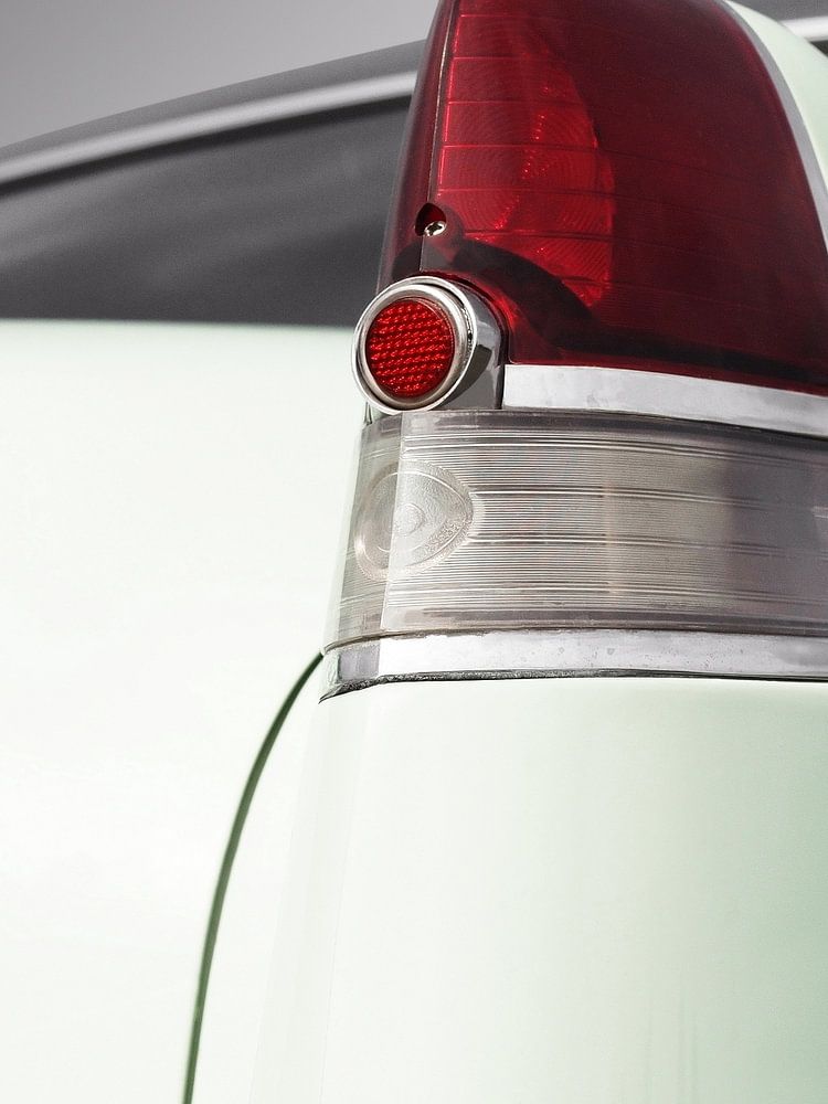 It shows you the rear of a fantastic American classic car from 1955. The focus is on some details of this spectacular automobile.