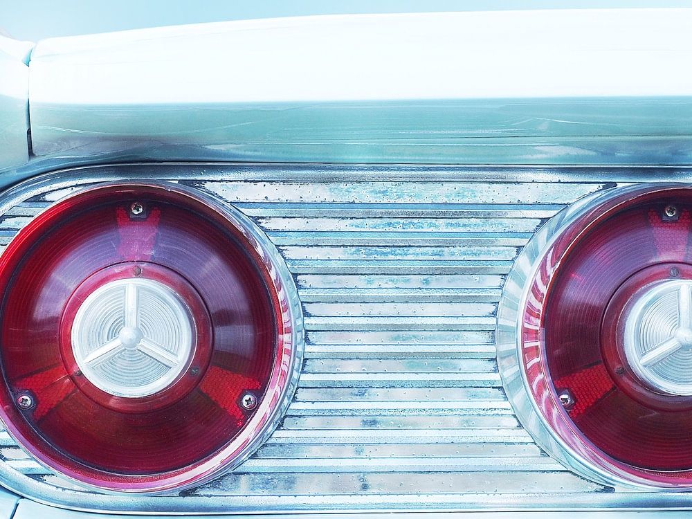 It shows you the rear of a legendary American classic car from 1959. The focus is on some details of this spectacular automobile.