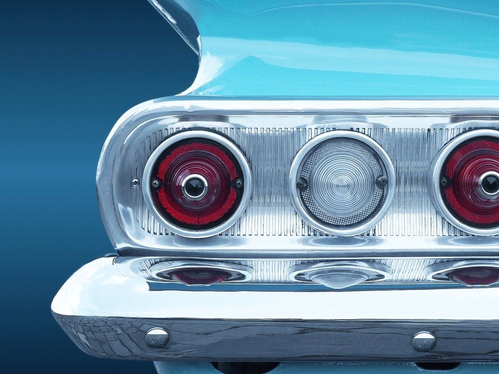 It shows you the rear of a legendary American classic car from 1960, focusing on some details of this spectacular automobile.