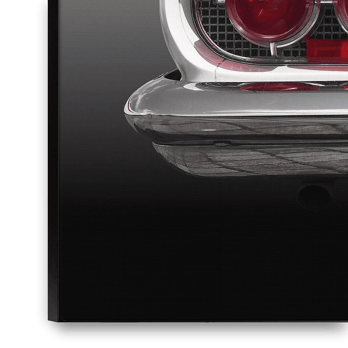 You see the rear of a legendary American classic car from the 1960s.