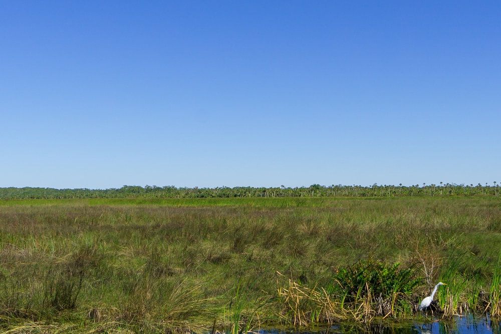 USA, Florida, Beautiful green landscape of everglades national park with white heron behind river by adventure-photos