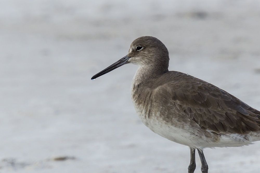 USA, Florida, Close up of a beautiful willet bird with brown feathering at madeira beach
