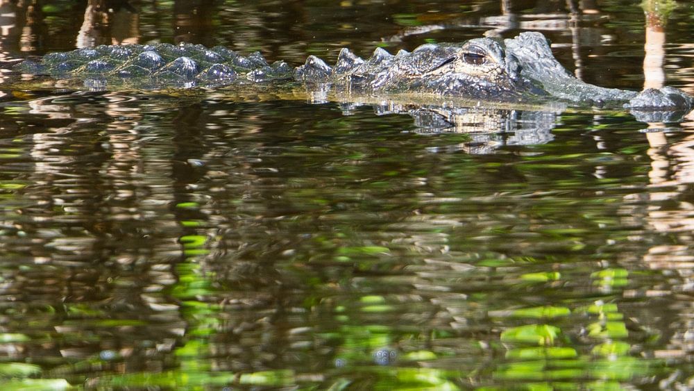 About "USA, Florida, Crocodile in reflecting water between mangrove forest"