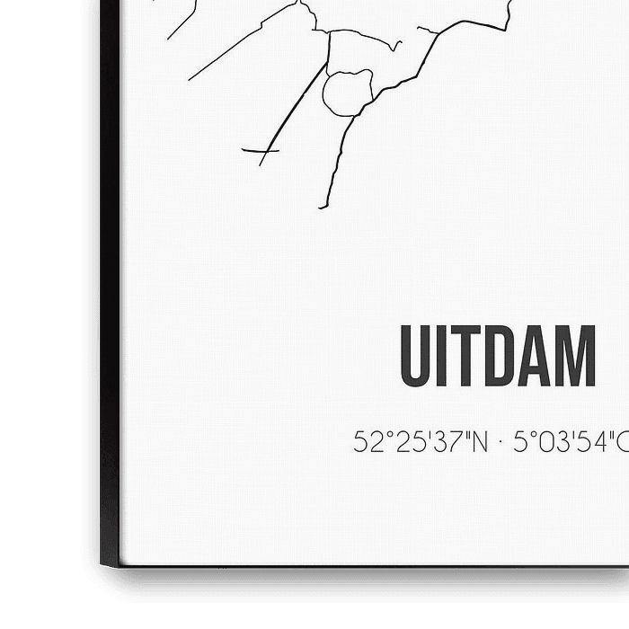 Black and white map, street map or street plan of Uitdam. Uitdam is located in the municipality of Waterland, province of North Holland. On the city map all public roads in Uitdam are included. Furthermore, the map is provided with the coordinates of the center of Uitdam.