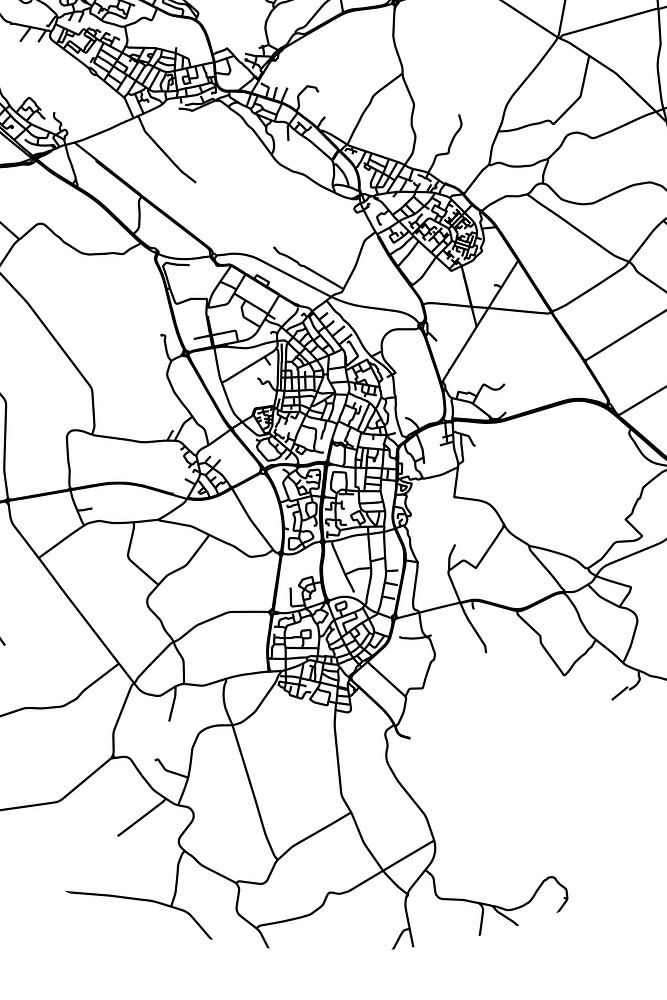 Black and white map, street map or street plan of Ulft. Ulft is located in the Liemers region, in the municipality of Oude IJsselstreek, province of Gelderland. On the city map all public roads in Ulft are included. Furthermore, the map is provided with the coordinates of the center of Ulft.