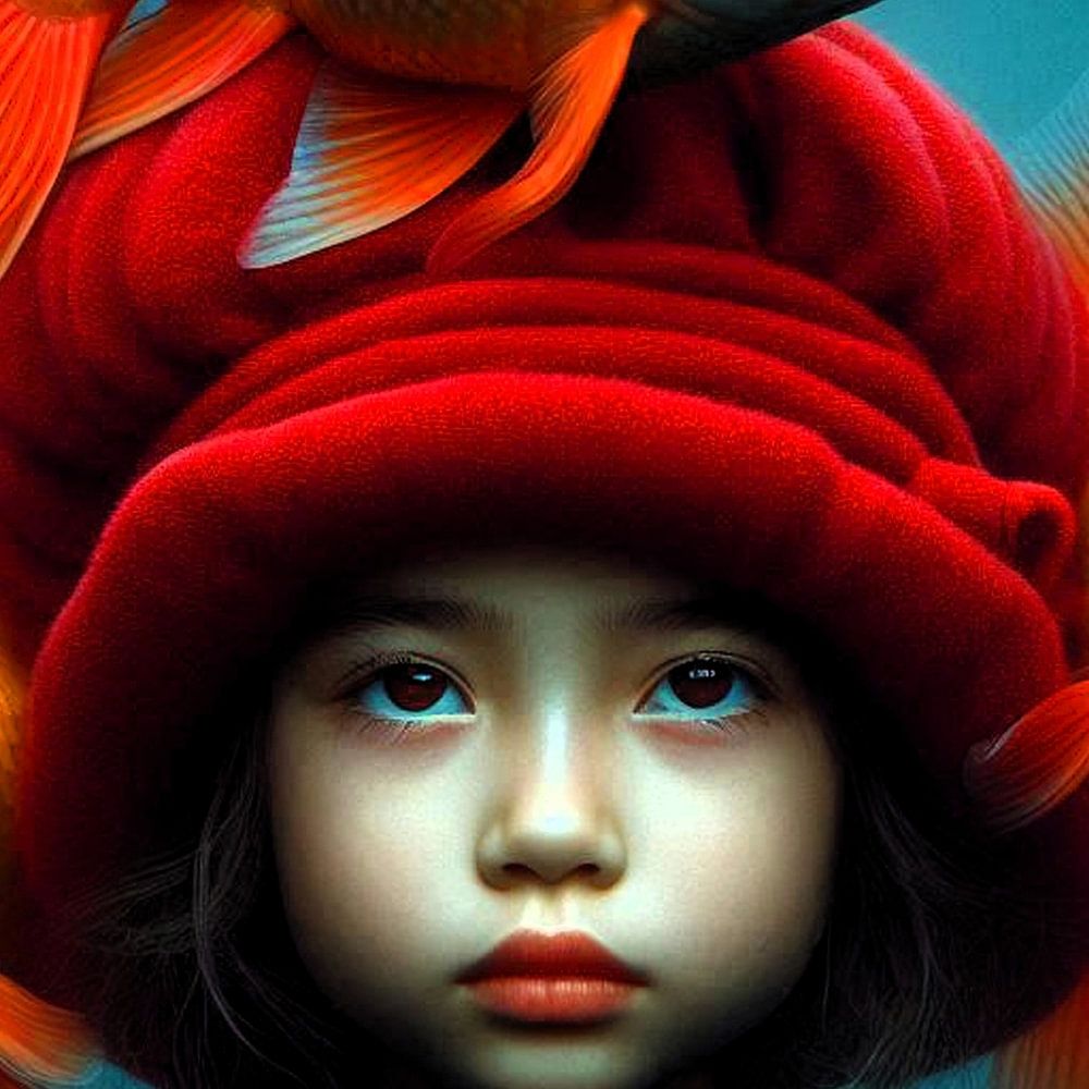 Girl / Goldfish / Water / Underwater girl / Red hat / Artificial Intelligences