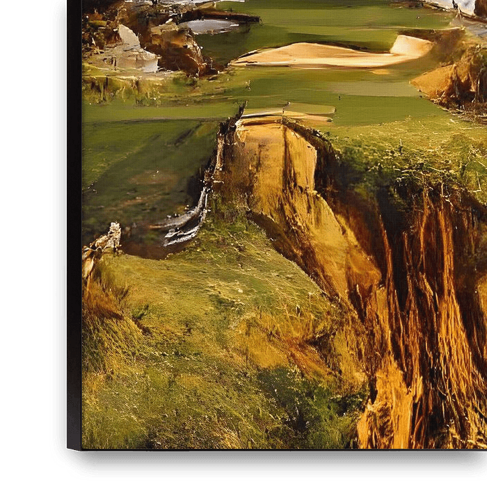 This canvas shows golf history at Pebble Beach No. 7, an iconic piece of scenery that harks back to June 1972 when the U.S. Open was first held there. It captures the sheer beauty of the 106 yards Par 3, which although short is one of the most challenging Par 3’s of golf. Situated along the iconic cliffs of California looking over the…