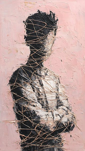 This expressive abstract wall art captures the fragile essence of human emotion through a dissolving silhouette filled with tangled lines. The figure slowly unravels into emptiness, symbolizing inner conflict, identity loss, and emotional release. Created in a textured acrylic painting style with thick palette knife strokes and soft…