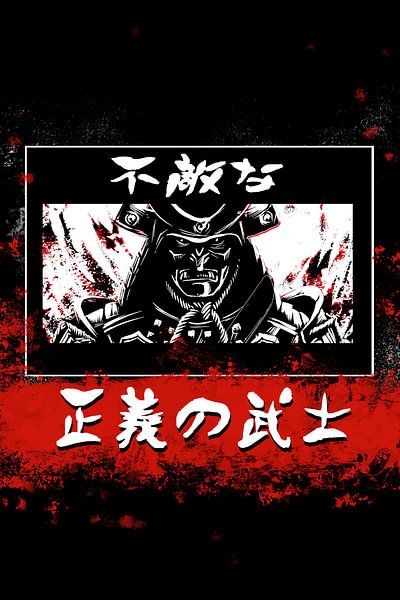 High-contrast noir aesthetic featuring a formidable samurai. The bold kanji and gritty textures evoke a sense of raw power and unwavering discipline. It is a visual tribute to the legendary code of Bushido and the spirit of the protector.