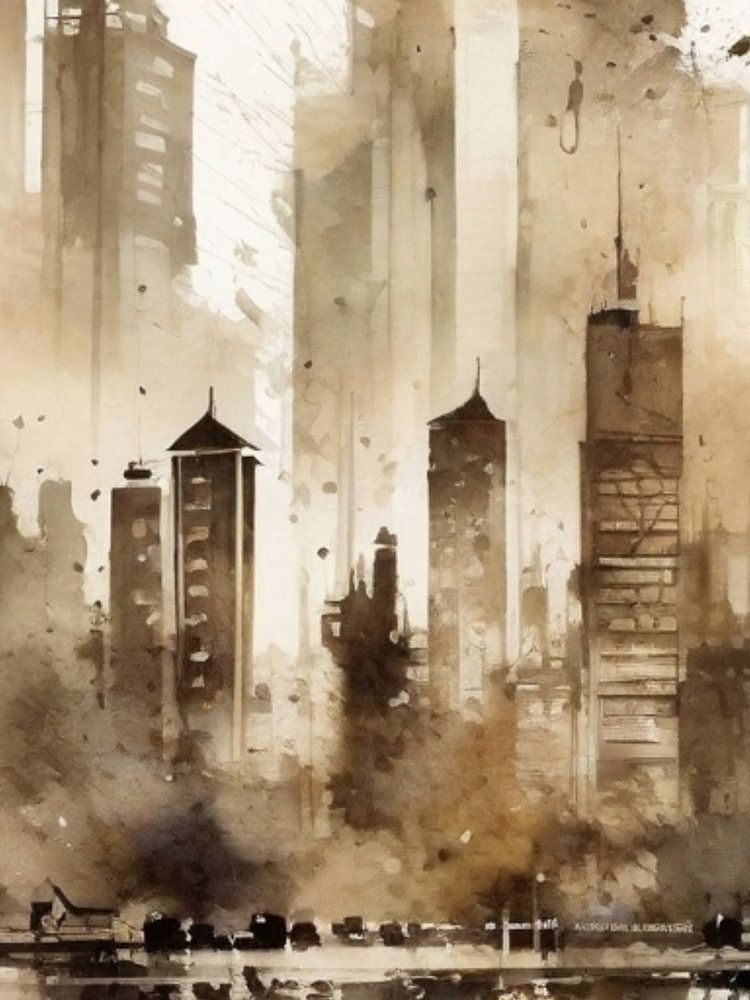 Our fine art print presents a fascinating abstract city rendered in soft, warm water colours. The harmonious brown tones give the motif an inviting and cosy atmosphere that captures the beauty and dynamism of urban life.
