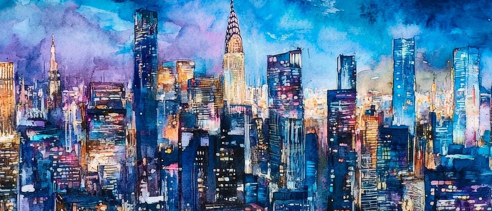 A breathtaking sea of lights unfolds over the skyline of a vibrant city, while mystical blue tones play with vivid neon lights. The extravagant skyscrapers, crowned by shining stars, add urban chic to the room. This artwork is perfect for the living room, where it can stimulate conversation and unleash creative energy.