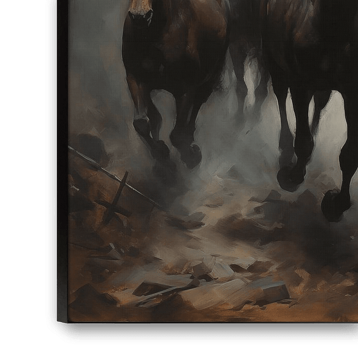 Buy this digital art artwork Urban turbulence: The Gallop Through Grey by Emil Husstege as a reproduction on canvas, ArtFrame, poster and wallpaper, printed on demand in high quality.