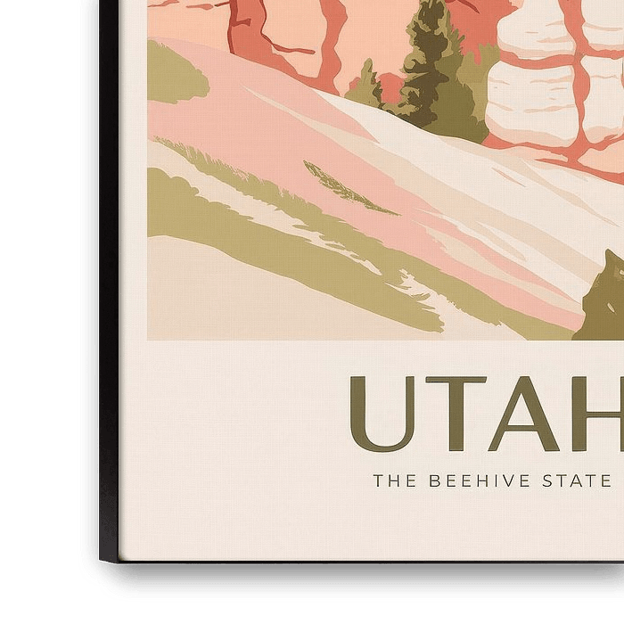 Soft pastel colours frame the majestic rocks of Utah, which shine in the warm light. The harmonious combination of earthy red tones and lush green lends life and tranquillity to the scenery. Perfect for the living room, this work of art creates an inviting atmosphere that invites viewers to dream and conveys a sense of closeness to nature.