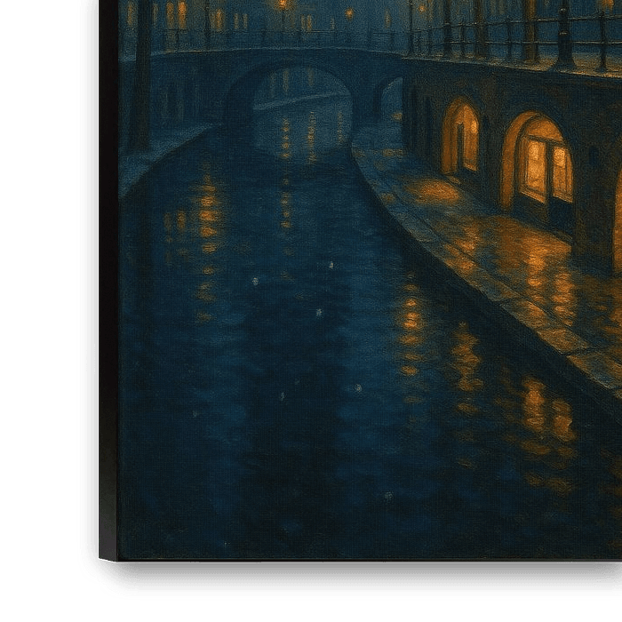 Utrecht Nightfall Elegance stands as both homage and evolution — inspired by Edward Hopper’s atmospheric realism, yet rooted in the warmth of Dutch romanticism. It speaks to anyone who has ever found beauty in a city’s silence, who understands that within every shadow, light patiently waits to be seen.