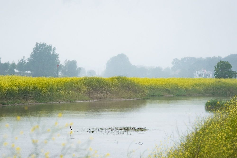 Palmerswaard bij Rhenen is een vrij nieuw aangelegd natuurgebied ( 2016). In dit fraaie gebied vindt je veel plassen, vogels en ook konik paarden. Ondanks dat de rokende schoorsteen in schril contract staat met al het natuurschoon, geeft het hier toch een heel apart en bijna dynamisch effect op de foto.